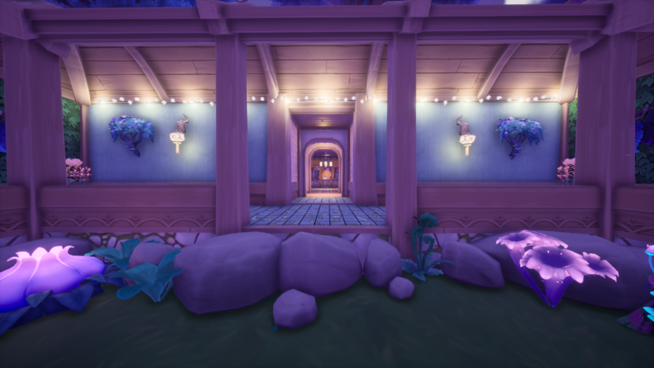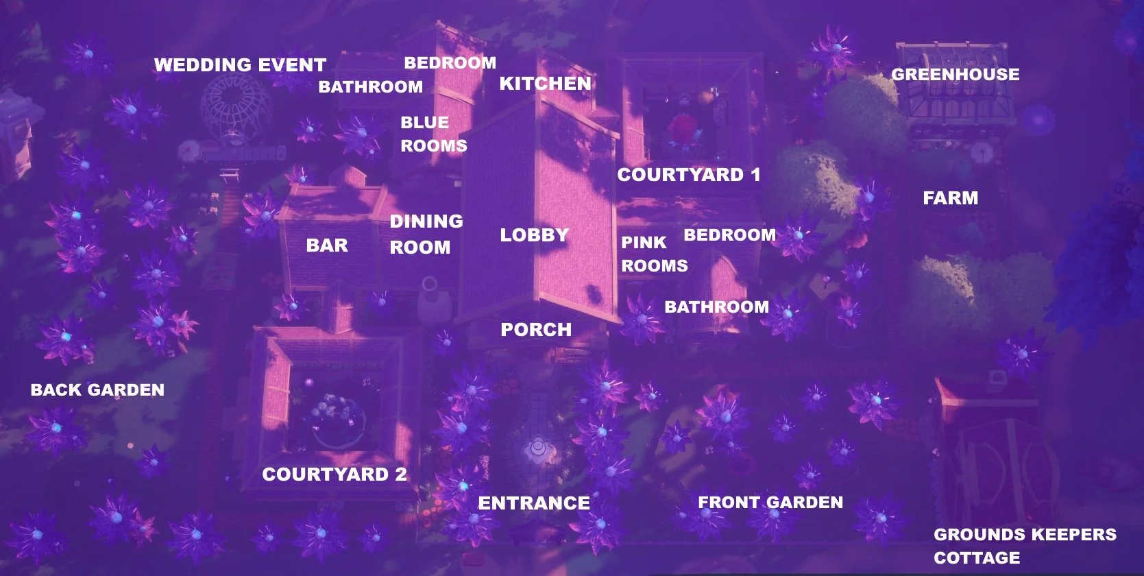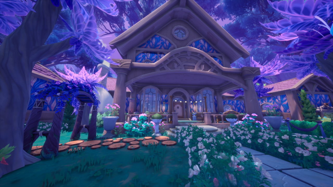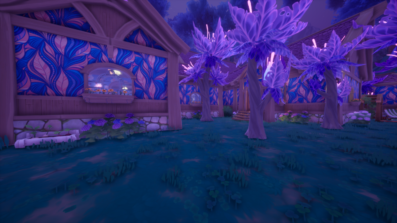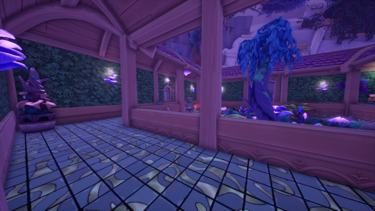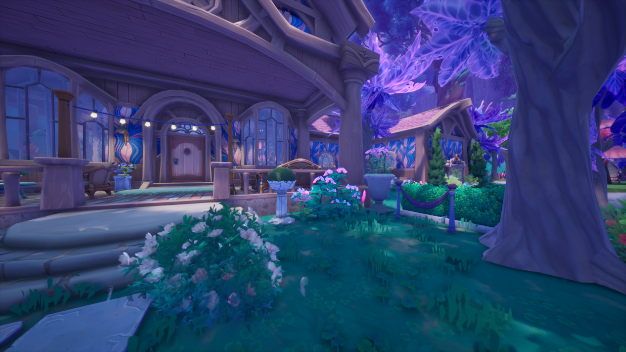 Welcome to our boutique Hotel deep in the Elderwoods. We have a pink suite, a blue suite, both with their own bathrooms, dining, a bar and plenty of space for our visitors to relax under the permanent twilight sky. There is also a space for small weddings out the back.