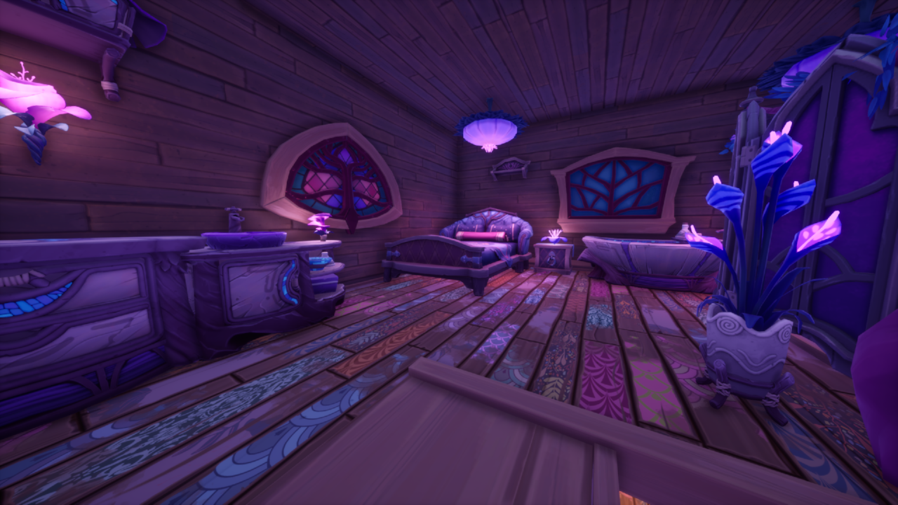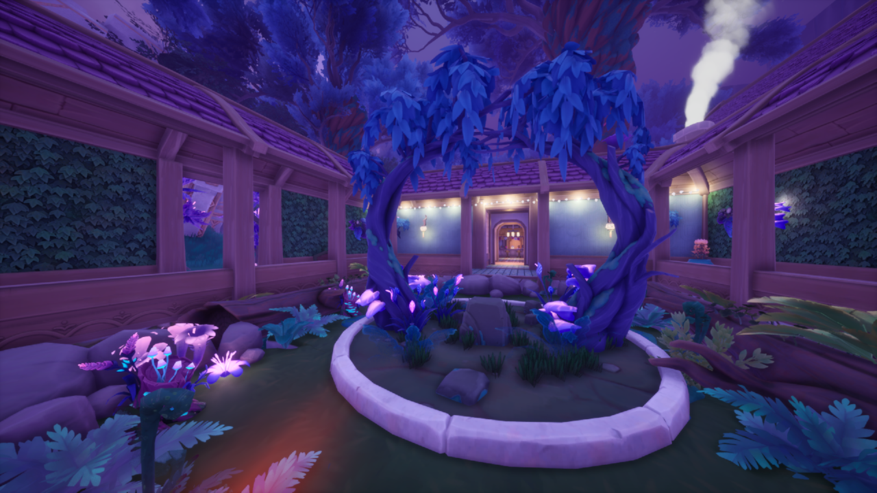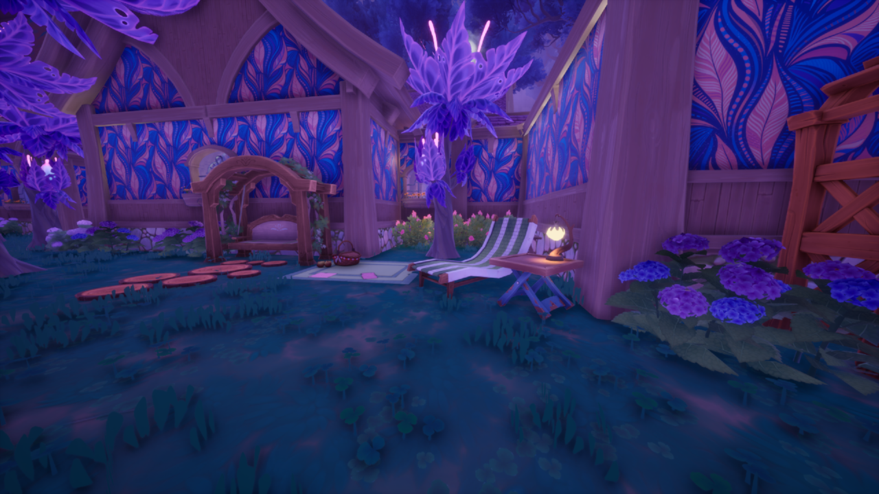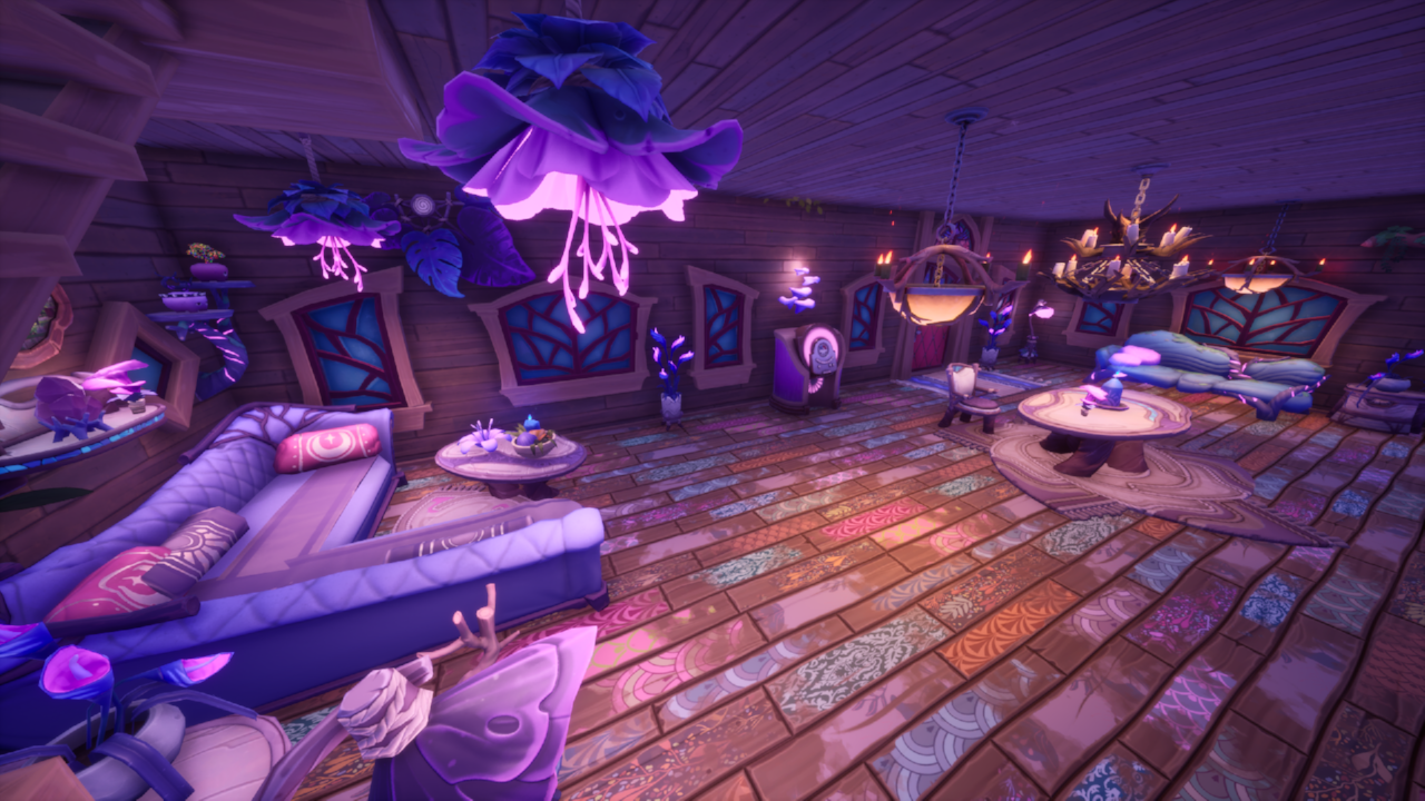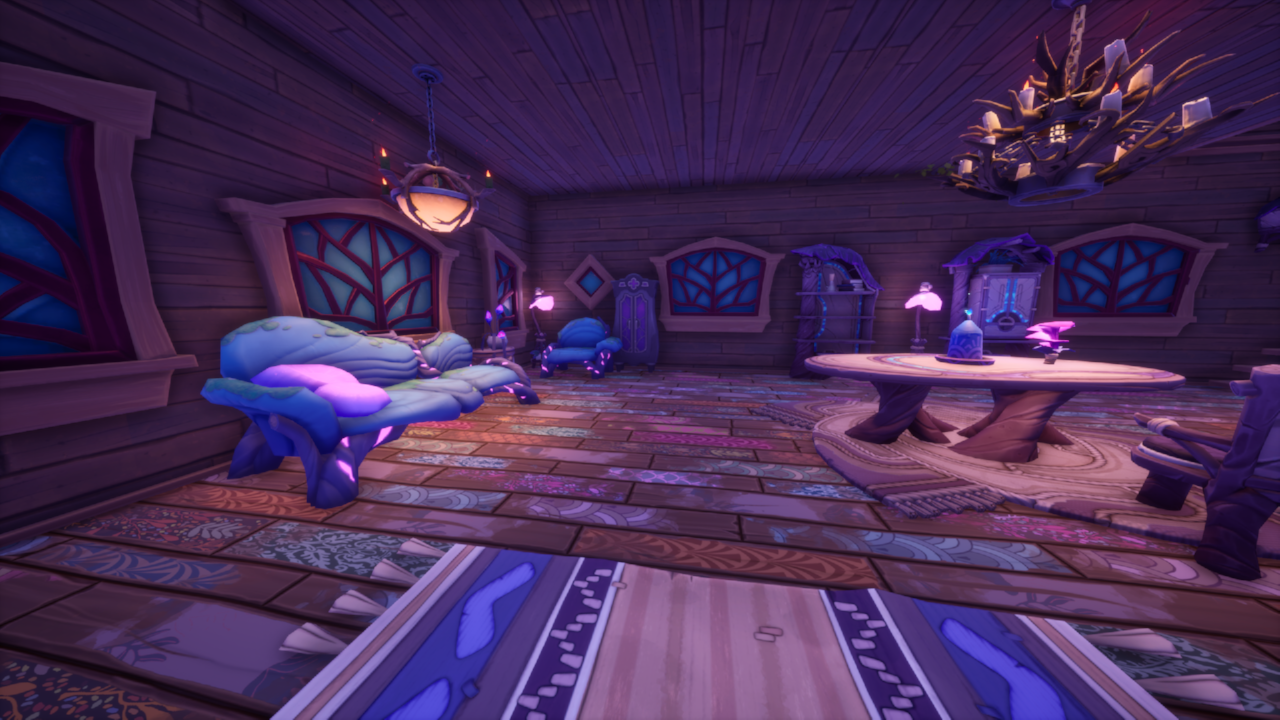 Welcome to our boutique Hotel deep in the Elderwoods. We have a pink suite, a blue suite, both with their own bathrooms, dining, a bar and plenty of space for our visitors to relax under the permanent twilight sky. There is also a space for small weddings out the back.