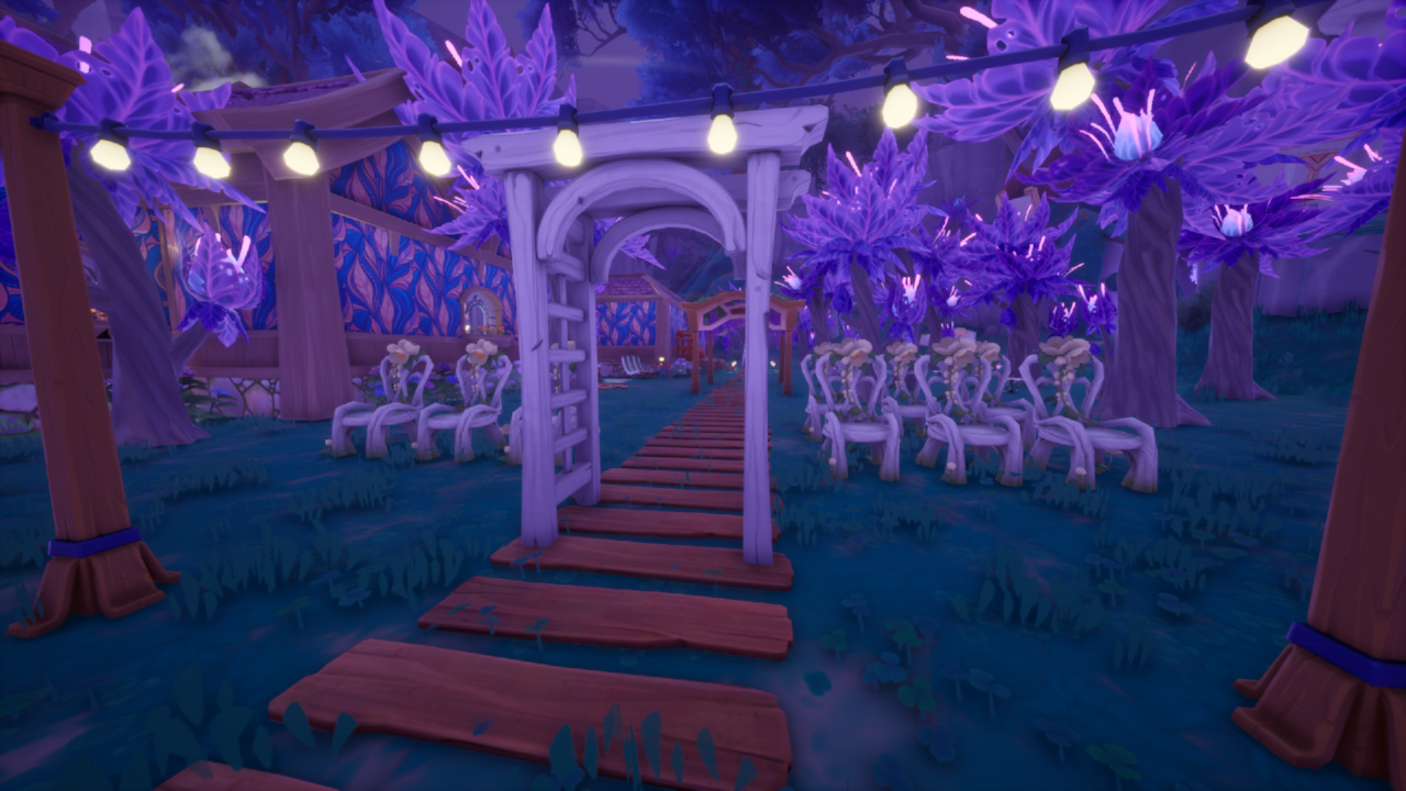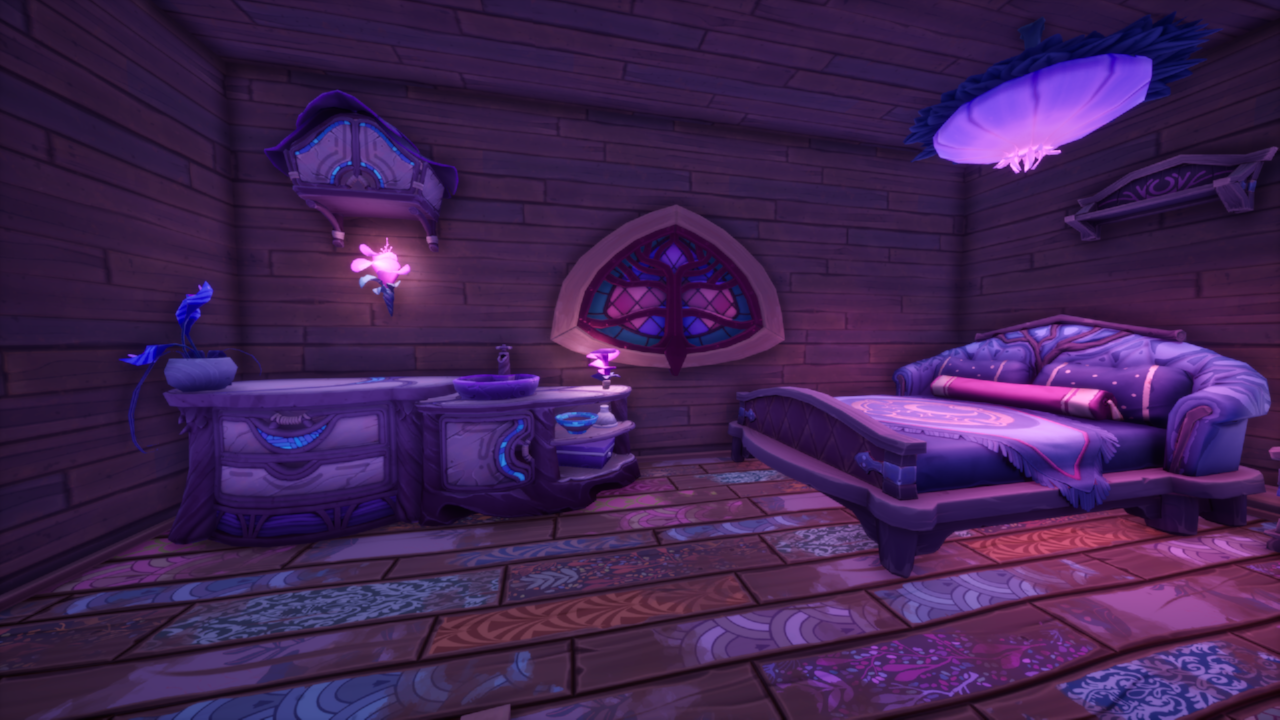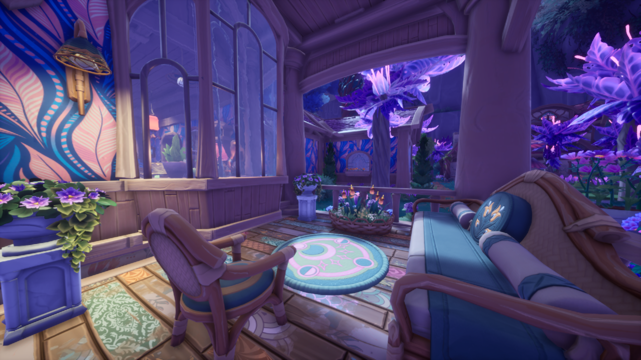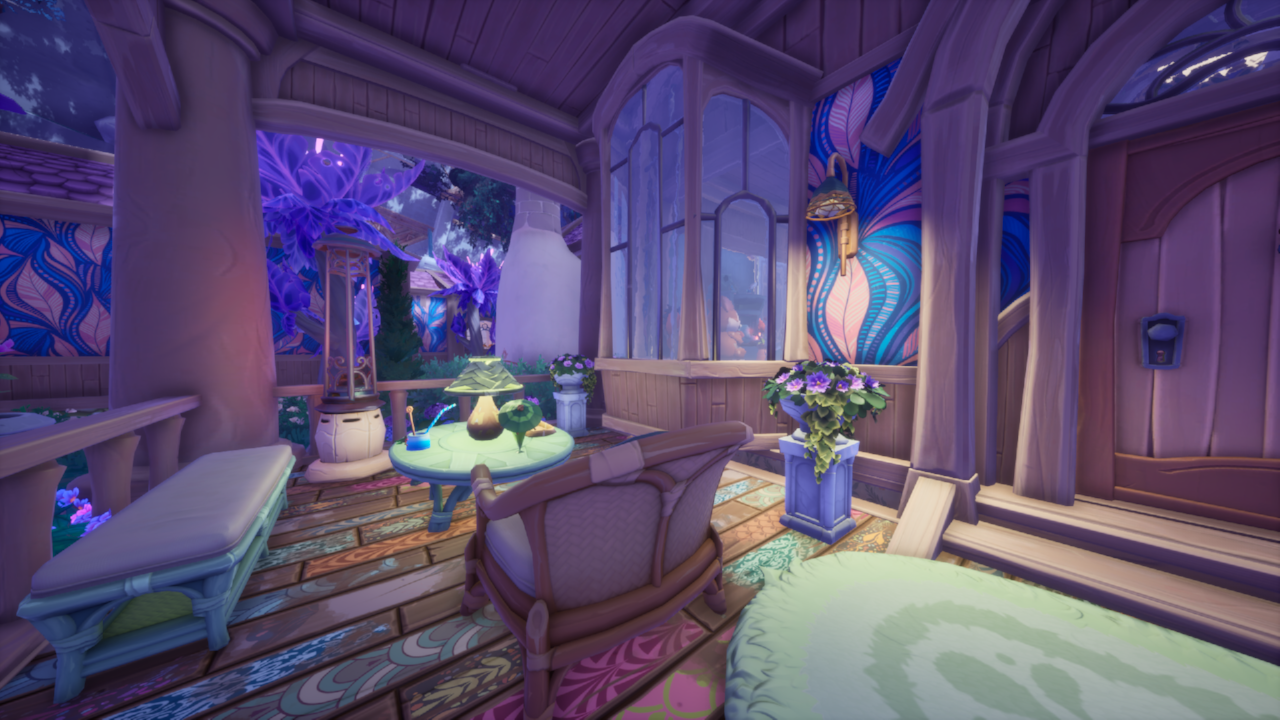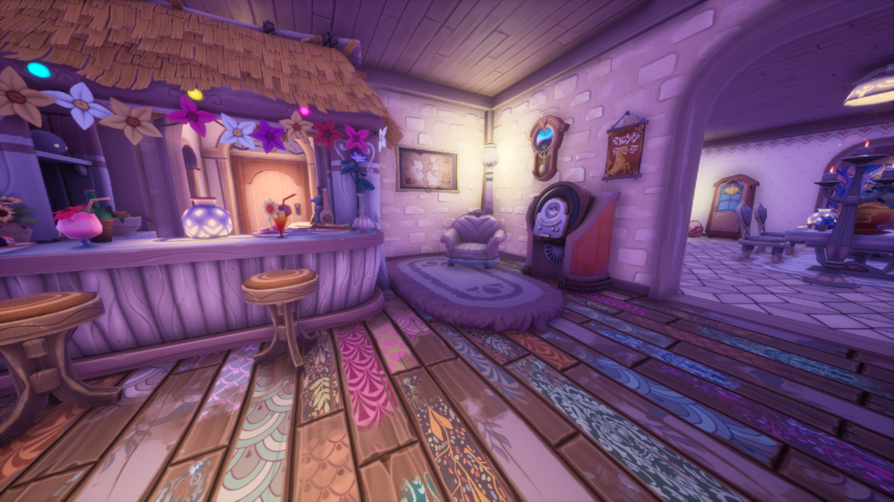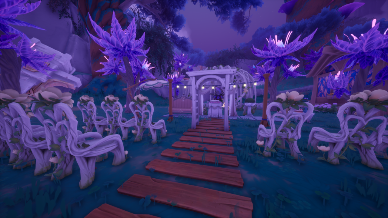 Welcome to our boutique Hotel deep in the Elderwoods. We have a pink suite, a blue suite, both with their own bathrooms, dining, a bar and plenty of space for our visitors to relax under the permanent twilight sky. There is also a space for small weddings out the back.