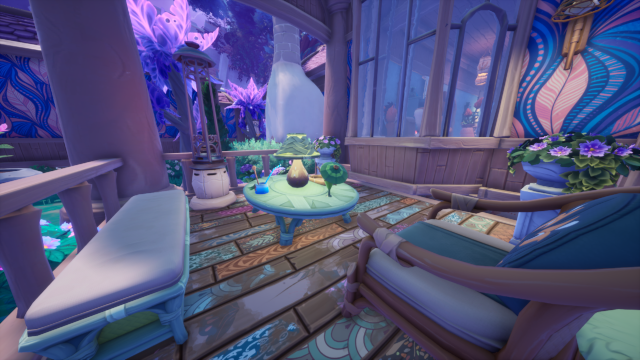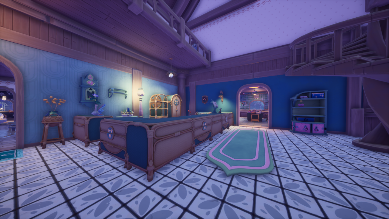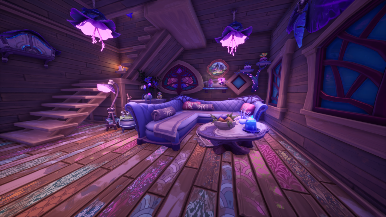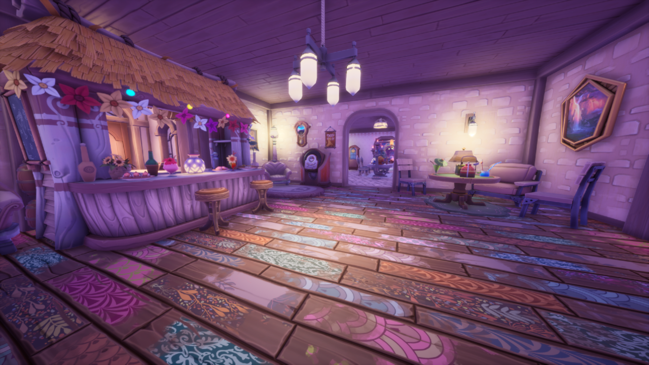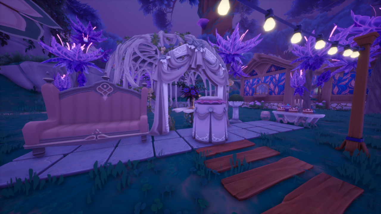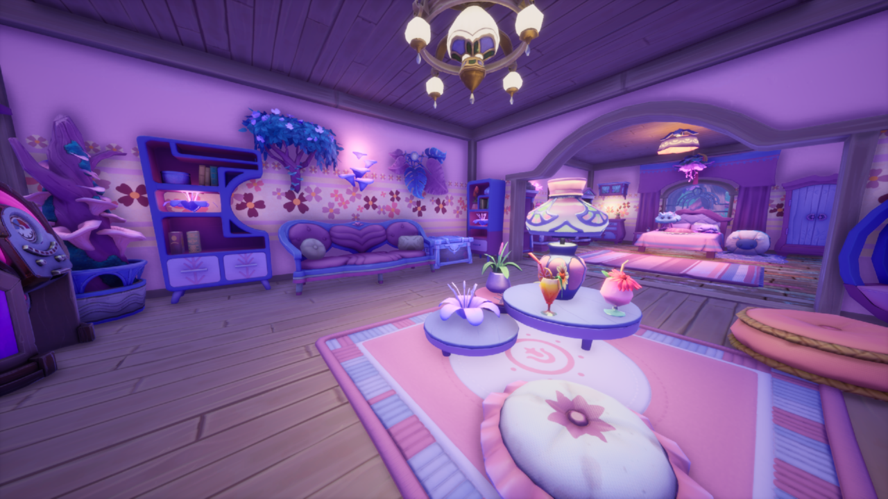 Welcome to our boutique Hotel deep in the Elderwoods. We have a pink suite, a blue suite, both with their own bathrooms, dining, a bar and plenty of space for our visitors to relax under the permanent twilight sky. There is also a space for small weddings out the back.