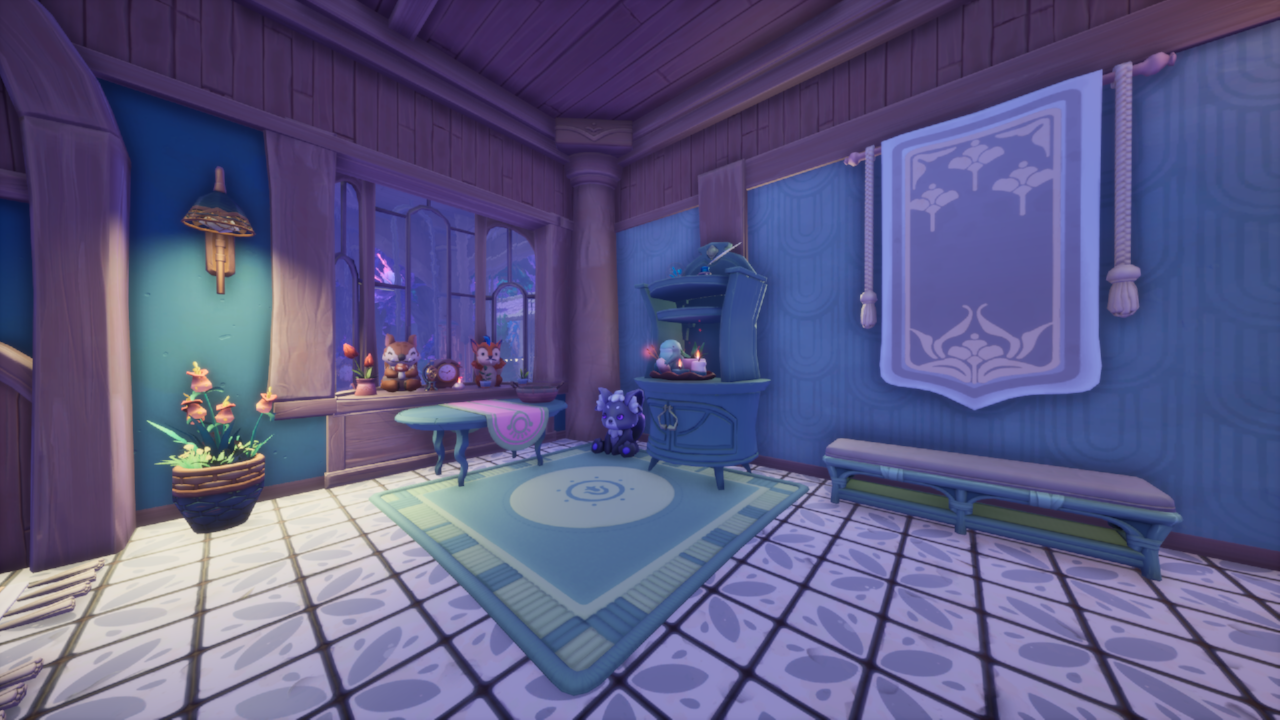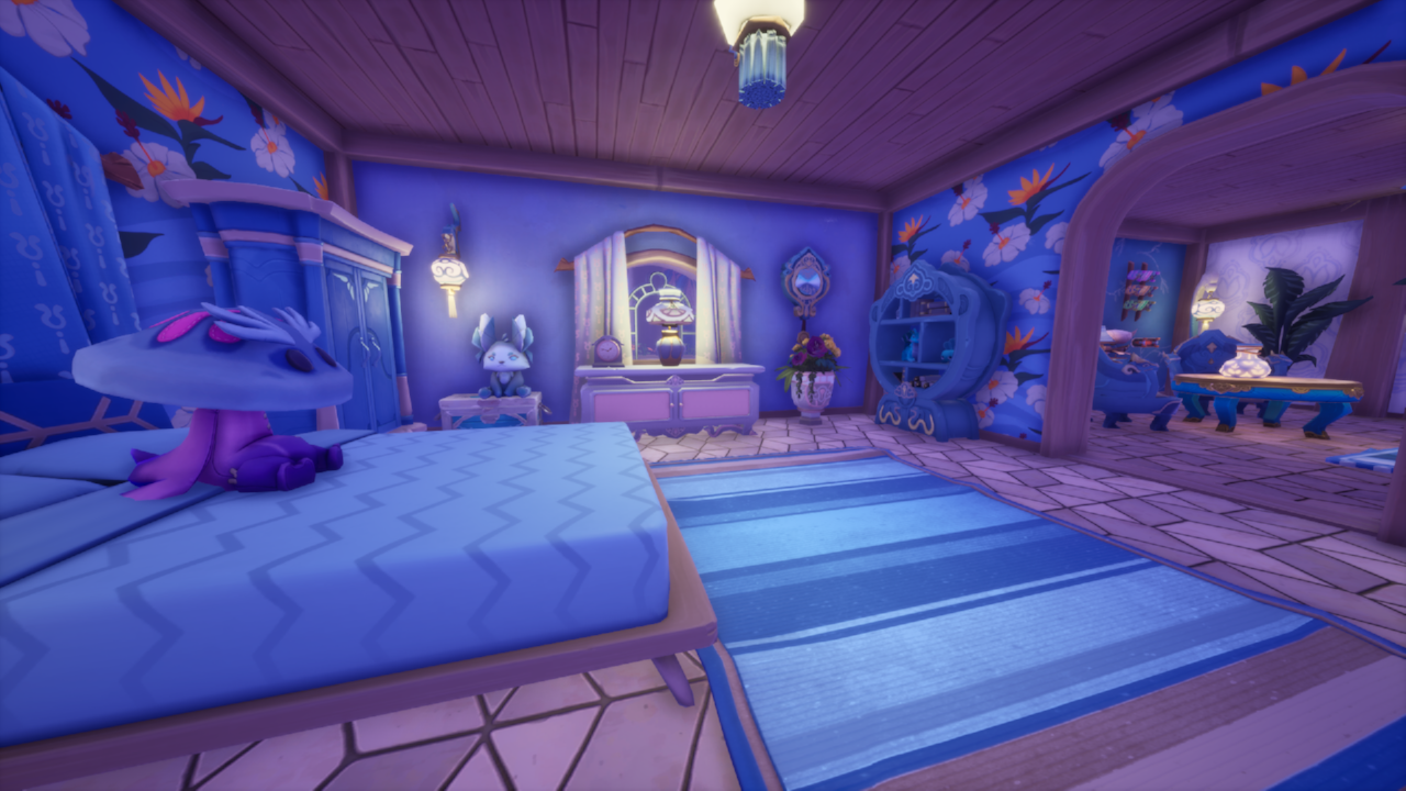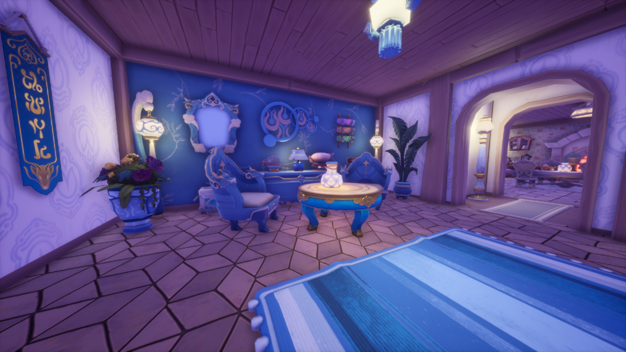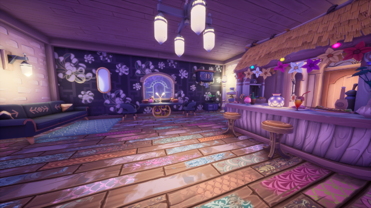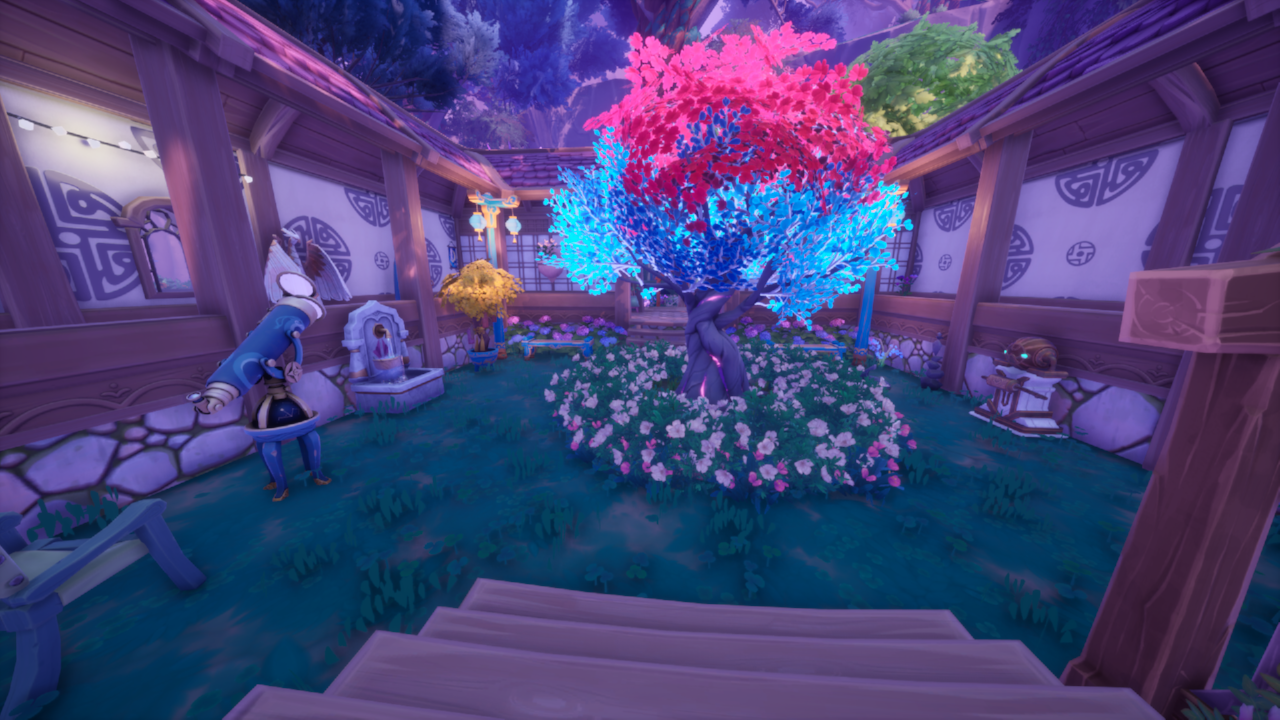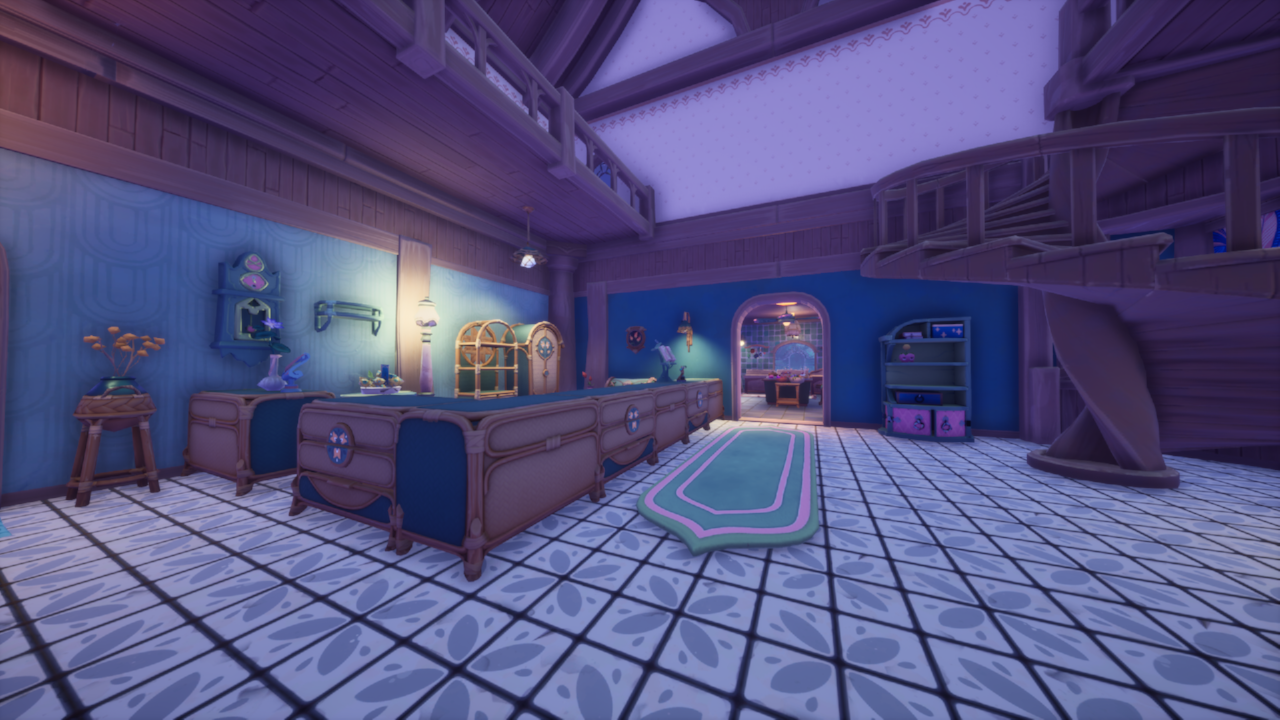 Welcome to our boutique Hotel deep in the Elderwoods. We have a pink suite, a blue suite, both with their own bathrooms, dining, a bar and plenty of space for our visitors to relax under the permanent twilight sky. There is also a space for small weddings out the back.