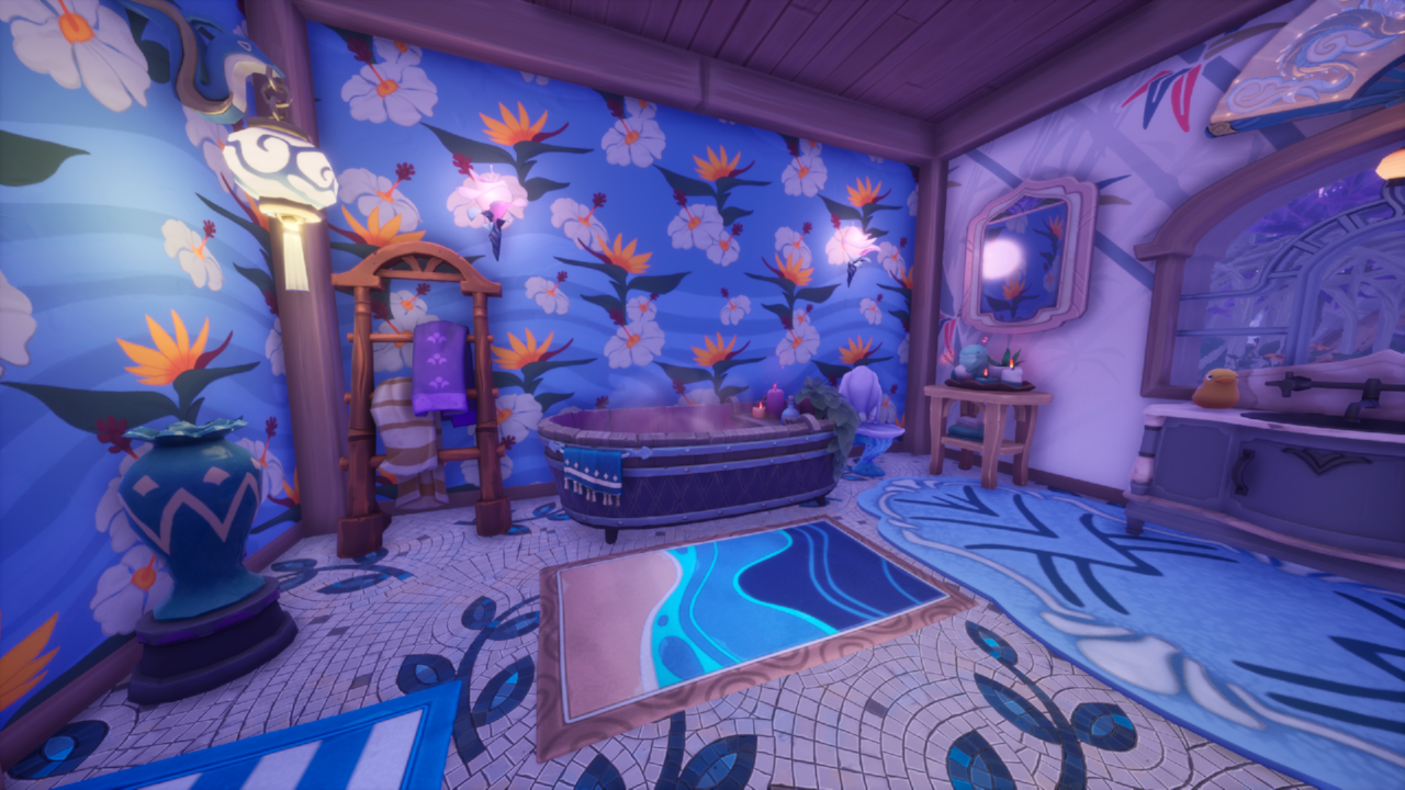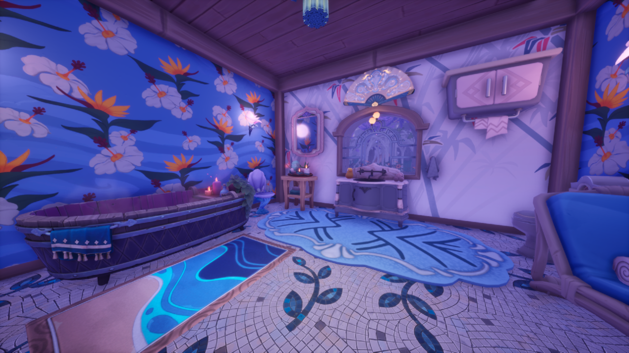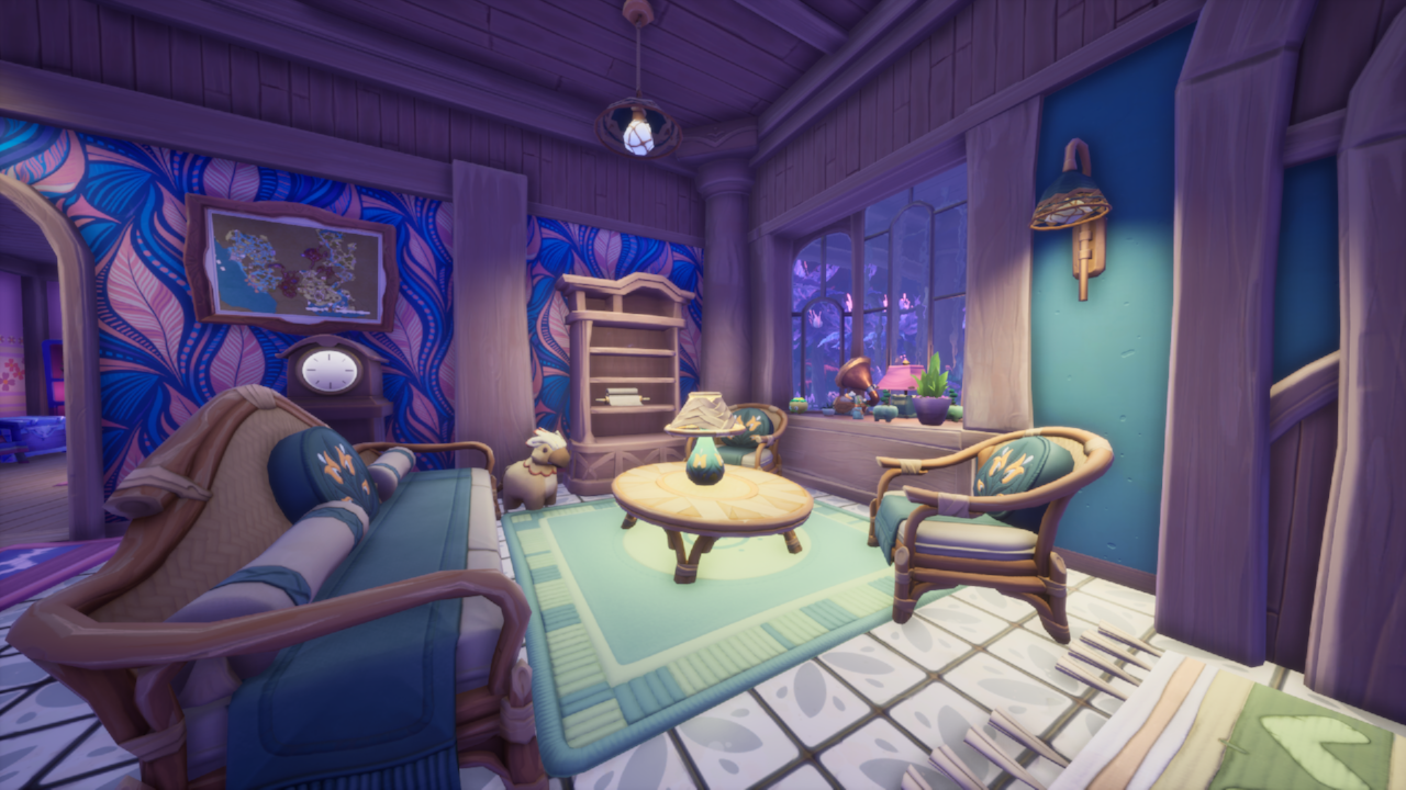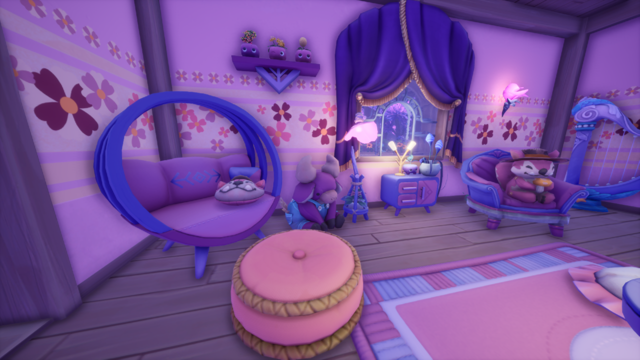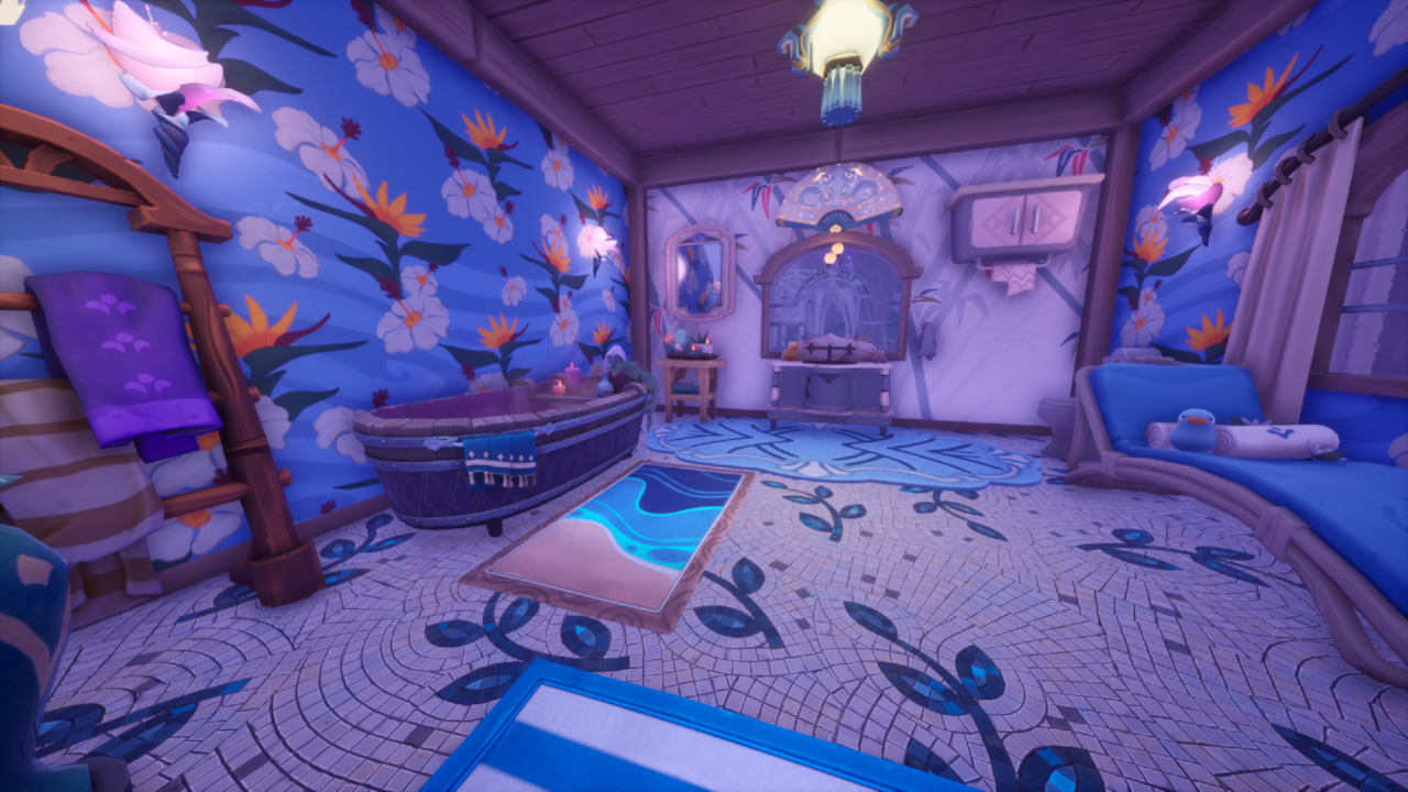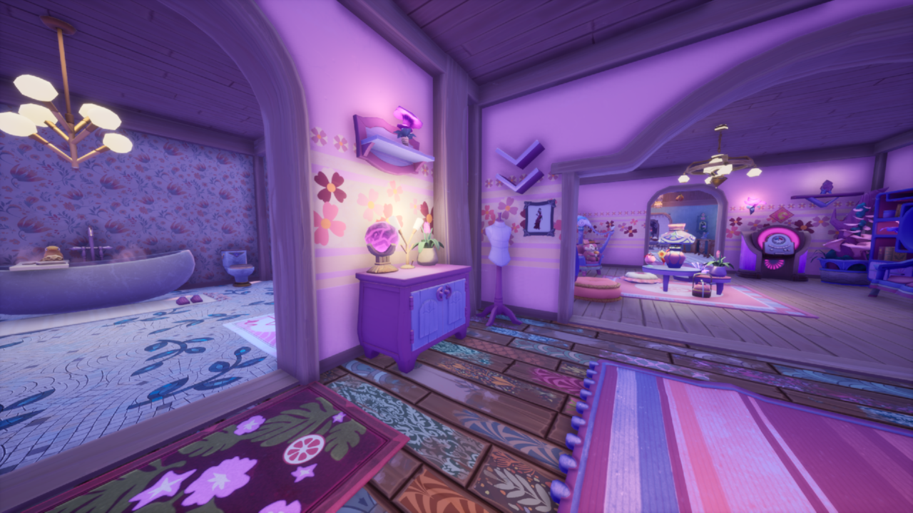 Welcome to our boutique Hotel deep in the Elderwoods. We have a pink suite, a blue suite, both with their own bathrooms, dining, a bar and plenty of space for our visitors to relax under the permanent twilight sky. There is also a space for small weddings out the back.